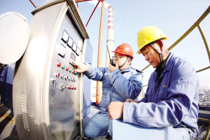 天津石化4台燃煤锅炉超净排放改造全面完成,烟气排放全面达到了市环保局要求。图为天津石化热电部除尘车间技术人员正在检查运行设备。